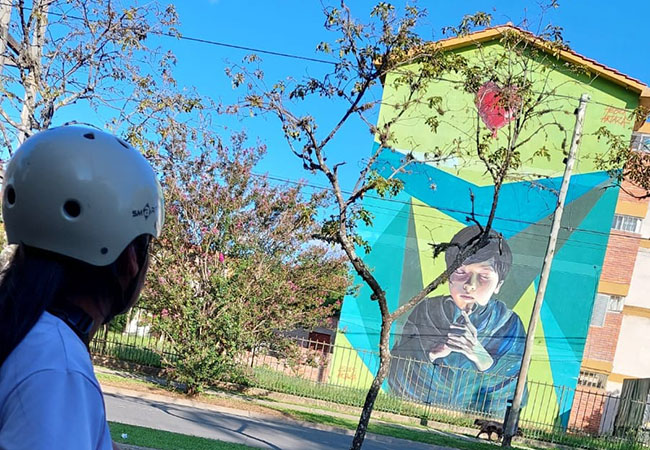 Recorrido guiado en bicicleta donde el visitante no solo observa, sino que conecta y vivencia el arte urbano de artistas salteños, plasmado en edificios y espacios recuperados a través del arte en distintos puntos de la ciudad.