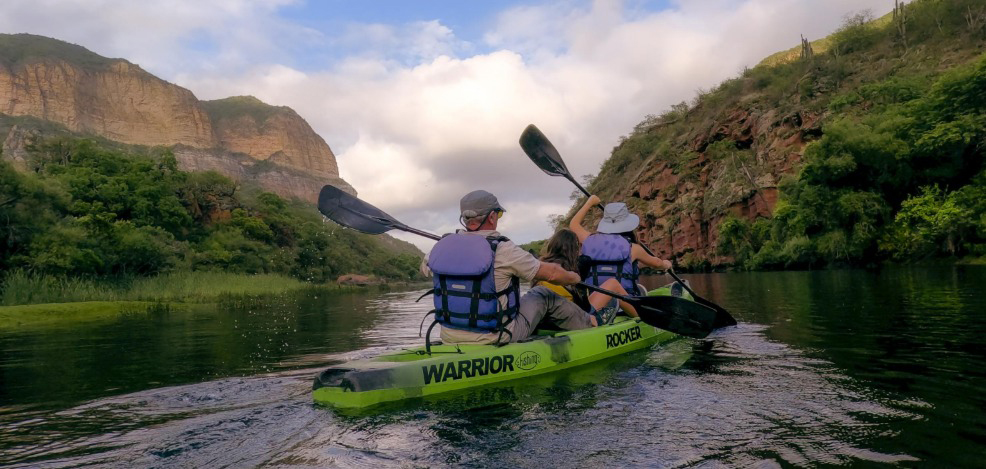 Encuentro en Galería de las Viñas. Snack de bienvenida. Traslado hasta el punto de inicio de la actividad junto al río, donde los guías darán las indicaciones de la actividad y se entregará el equipamiento. A bordo de un sit-on-top doble o triple comienza una navegación apacible recorriendo el Cañón del Juramento. Oportunidad de buenos avistajes de aves e interpretación geológica de las imponentes formaciones rocosas. Sensación de paz que solo la naturaleza puede ofrecer.