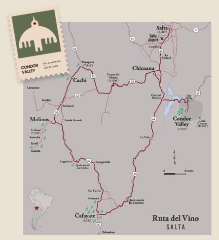 Se sale desde Galería de las Viñas, ya sea a caballo, caminando, o en camioneta 4 x 4, recorriendo plantaciones de viñedos, cardonales, lugares de interés histórico. Se llega a la base y empieza el ascenso. Una vez arriba, se inicia el recorrido a pie de 200 metros llanos hasta llegar al mirador. Se les entrega binoculares para apreciar vista del imponente Cañón y el vuelo de los cóndores, entre otras aves.