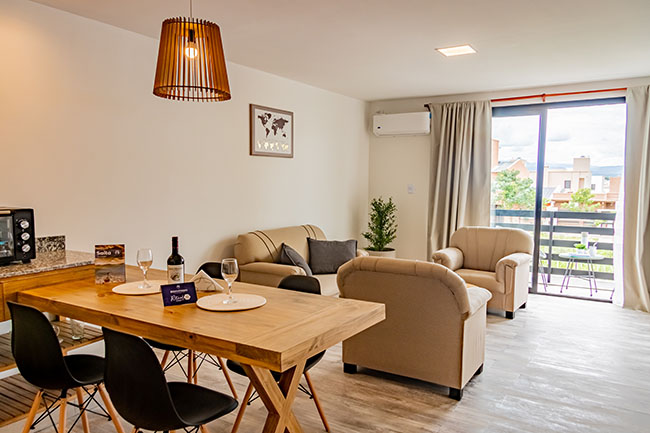 Monoambientes y suites totalmente equipadas frente al aeropuerto, en un entorno privado y tranquilo, ideales para estadías cómodas y prácticas.